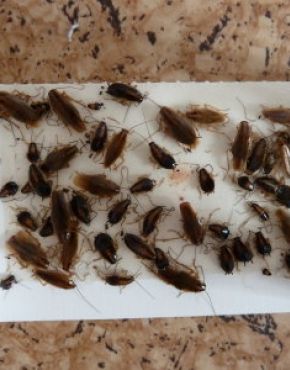 Obwohl die Flügel bei dieser Art deutlich besser entwickelt sind als bei der Orientalischen Schabe, sind die Tiere dennoch höchstens zum Gleitflug befähigt. Das Halsschild (Pronotum) weist 2 dunkle Längsstreifen auf. Die flachen, 6 x 3 mm großen Eikapseln (Ootheken) sind hell- bis mittelbraun gefärbt. Blattella germanica ist in mitteleuropäischen Breiten bevorzugt in feuchtwarmen Räumen wie Großküchen, Bäckereien, Kantinen, Schwimmbädern, Wohnheimen, Krankenhäusern und Gewächshäusern anzutreffen. Aber auch in Privathaushalten ist die Deutsche Schabe häufig. Zwischen 7 und 12°C zeigt die Deutsche Schabe nur noch eine eingeschränkte Aktivität. Sinkt die Temperatur auf unter 4°C, so sind die Tiere nicht mehr in der Lage sich fortzubewegen. Dennoch ist selbst in Deutschland eine Überwinterung im Freien möglich. Die Entwicklungsdauer von der Eiablage bis zur letzten Häutung ist von der Temperatur abhängig. Sie beträgt bei 30°C 41 Tage und kann sich bei 22°C auf bis zu 244 Tage verlängern. Die Eikapseln können sogar - 22°C ertragen, ohne dass die sich in ihnen entwickelnden Larven geschädigt werden. In Räumen, in denen eine Durchschnittstemperatur von 30°C herrscht, können pro Jahr 3 bis 4 Generationen entstehen. Ein Weibchen der Deutschen Schabe kann im Lauf seines Lebens insgesamt 150 bis 200 Eier produzieren. Ähnlich wie bei den übrigen drei hier vorgestellten Schabenarten handelt es sich auch bei der Deutschen Schabe um einen Hygiene- und Materialschädling, der unbedingt bekämpft werden sollte. Es gibt verschiedene Möglichkeiten Schaben zu bekämpfen. Mit Lockstoffen versehene Klebefallen dienen neben der direkten Bekämpfung in erster Linie dazu, das Ausmaß des Befalls abzuschätzen.